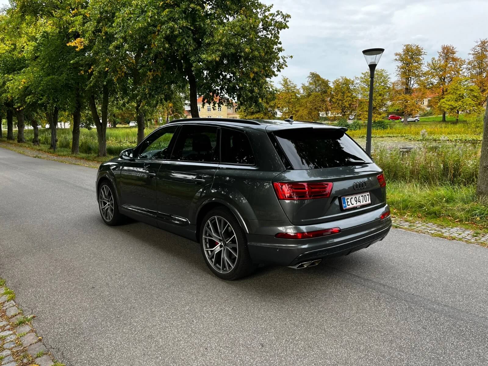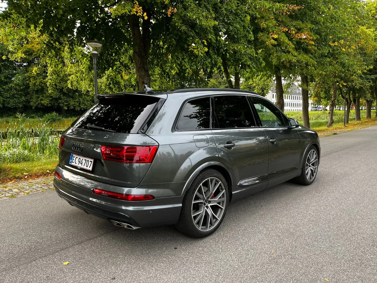 Udvendigt står Audi SQ7 med en stolt og kraftfuld fremtoning . Med sin unikke og markante designprofil, inklusive elegante linjer og imponerende LED-belysning, signalerer den både styrke og stil. Om du står foran bygninger med glasfacader eller kører langs landeveje, vil denne bil altid vise sig fra sin bedste side.