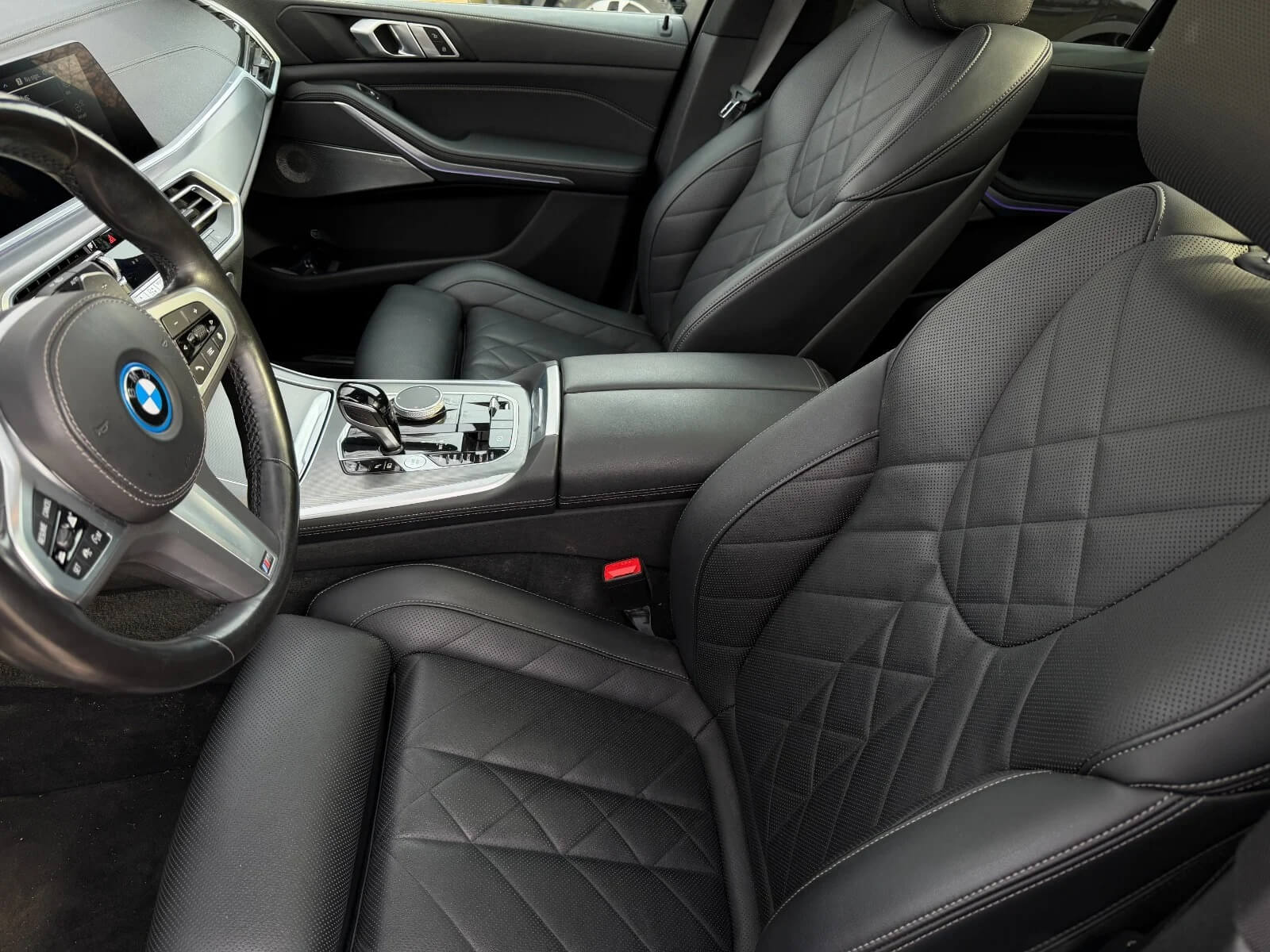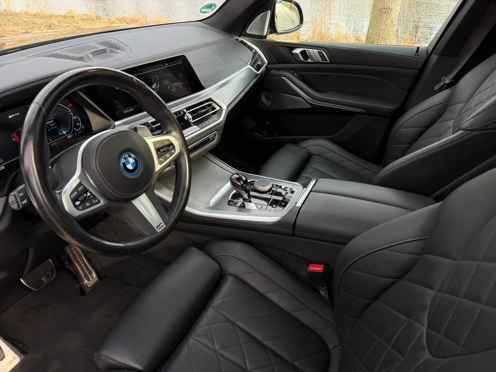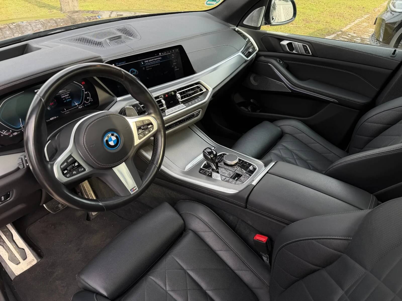 Interiøret i BMW X5 xDrive45e M-Sport+ er en klasse for sig. Det er udsmykket med luksuriøse materialer og topmoderne teknologi, som sikrer både komfort og enestående funktionalitet. M-Sport+ pakken fremhæver sportsligheden med elementer som sportssæder og M-Sport rattet, der tilføjer en eksklusiv og sporty atmosfære i kabinen.