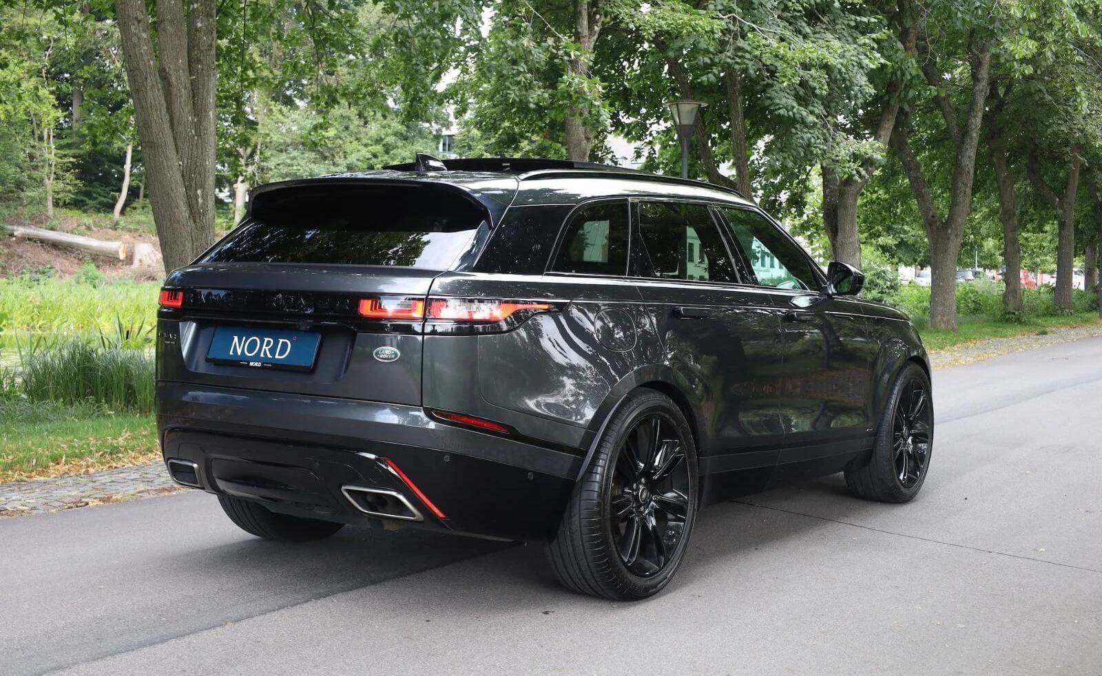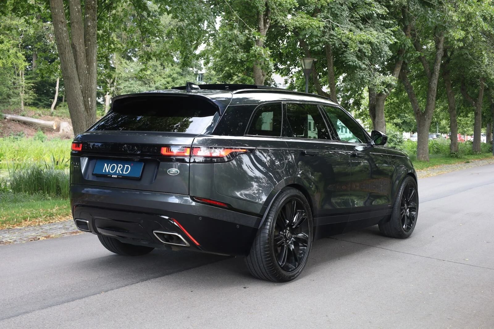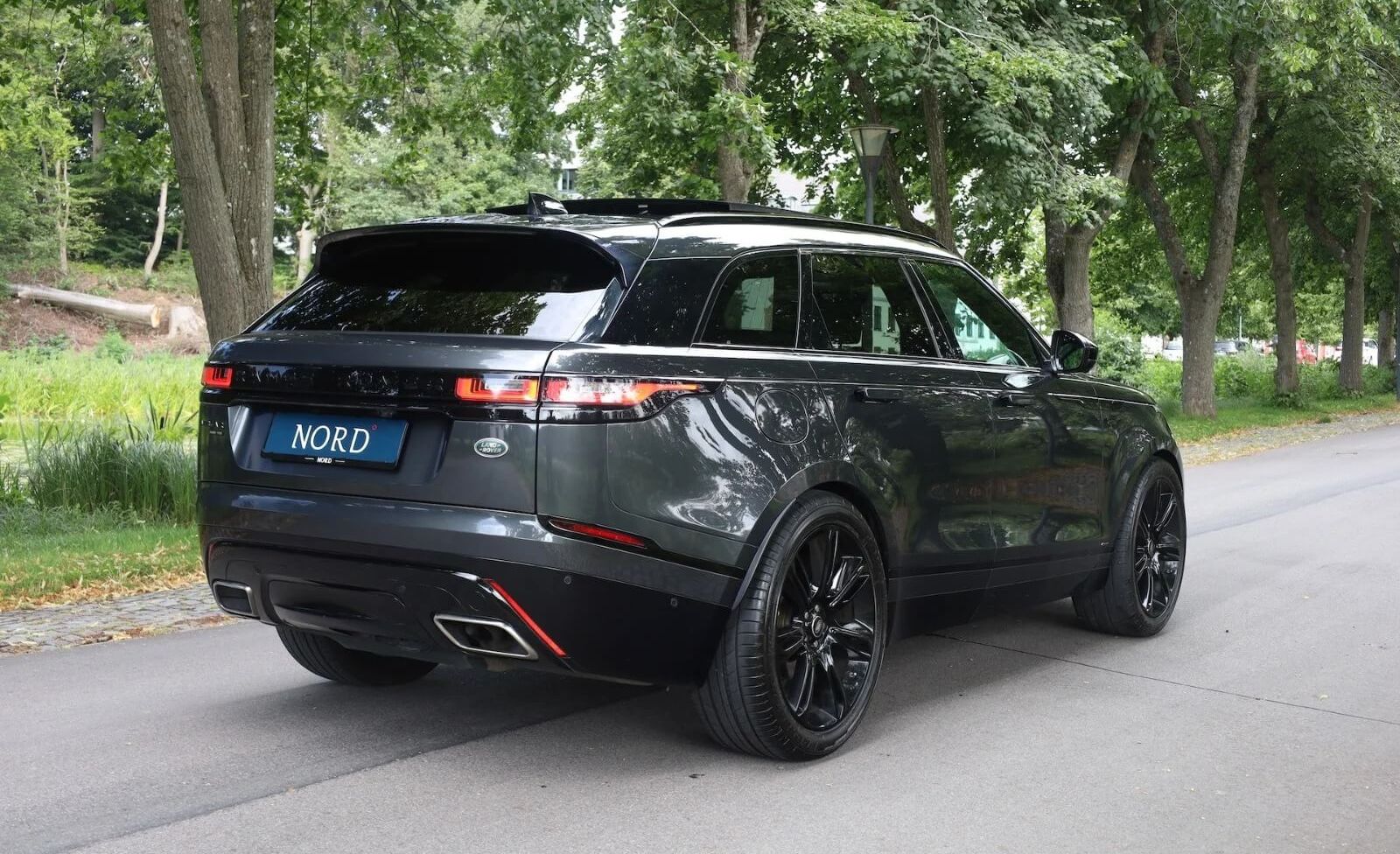 Range Rover Velar er kendt for sin sofistikerede og minimalistiske stil, som adskiller den fra mængden. Dens slanke linjer og dynamiske profil giver et moderne og attraktivt udseende, der passer perfekt til den kræsne bilentusiast. Lygterne og grilldesignet er subtilt integreret og understreger bilens luksuriøse fremtoning.