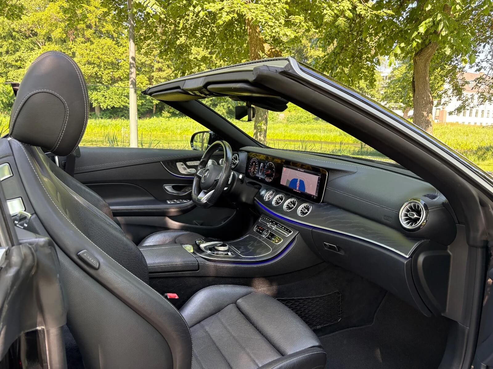 Denne E400 udgave skræddersyet i AMG Line trimmen, er designet til at fange blikket, uanset hvor du kører. Med sit elegante og sporty ydre, komplet med AMG-styling, giver bilen et aggressivt, men klassisk udtryk der passer perfekt til den blotte nydelse af åben-himmel kørsel.