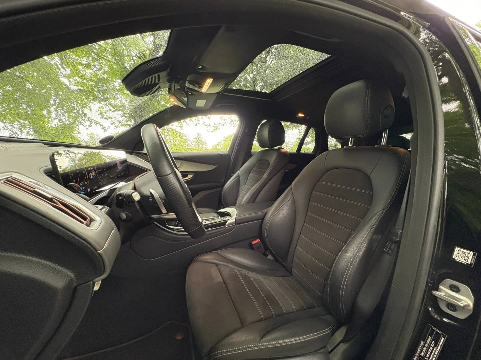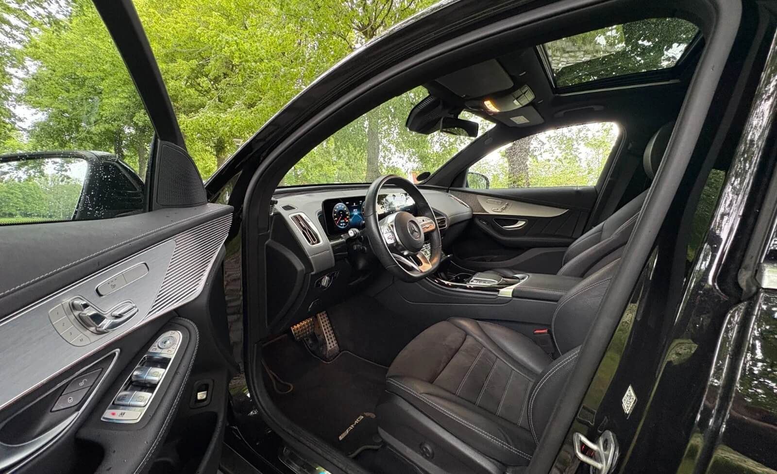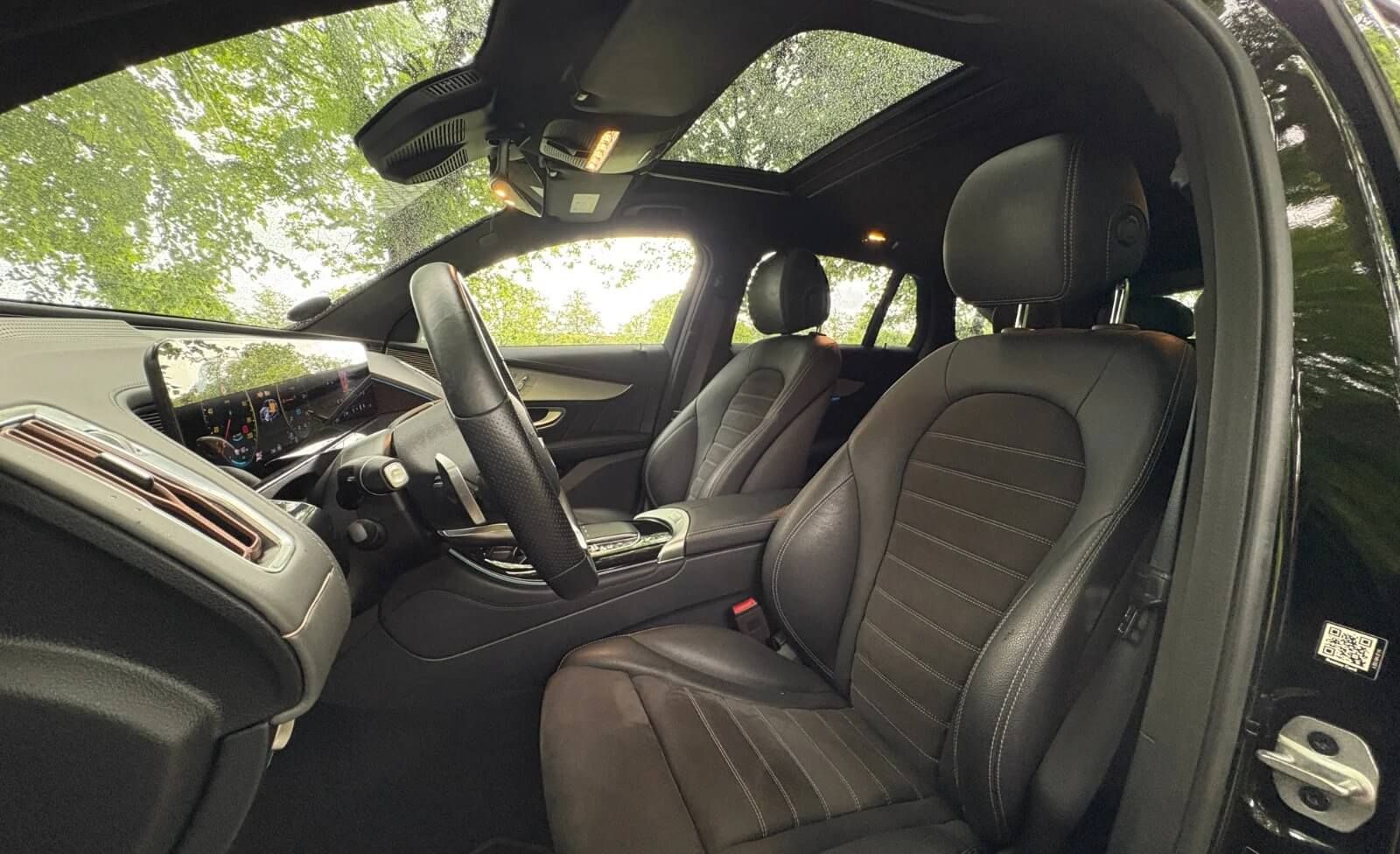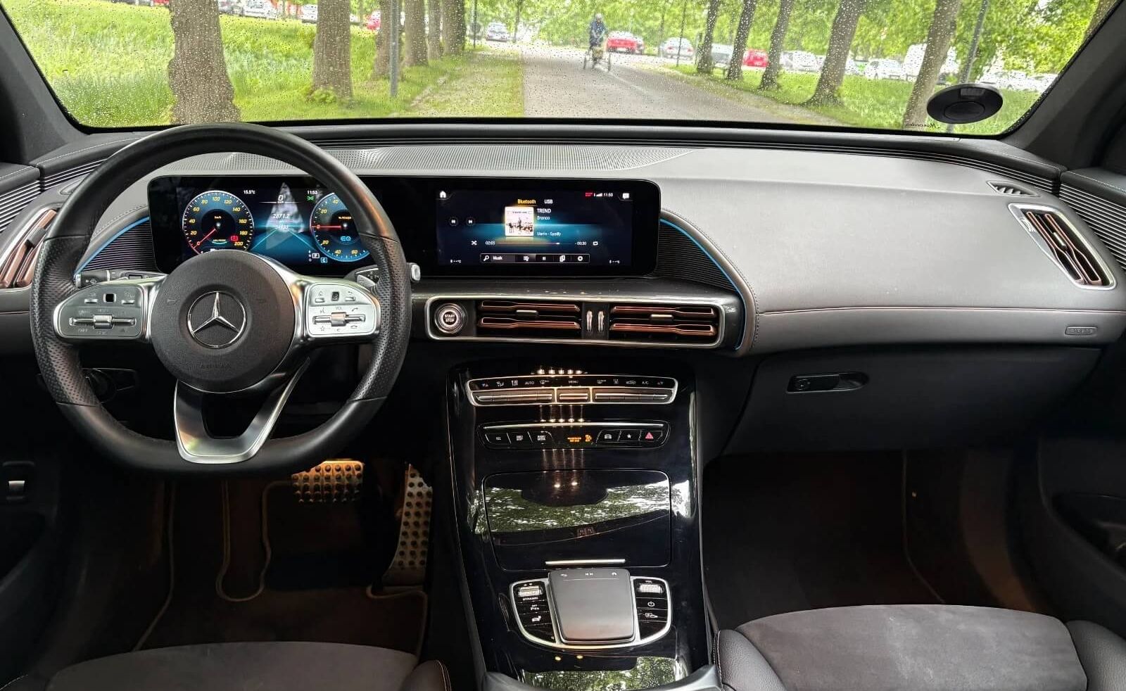 Komfortabelt, teknologisk og luksuriøst interiør: EQC400 byder på et veludstyret kabinemiljø med digitalt cockpit og infotainment, høj siddekomfort og praktisk rummelighed — ideel til både pendling og længere ture.