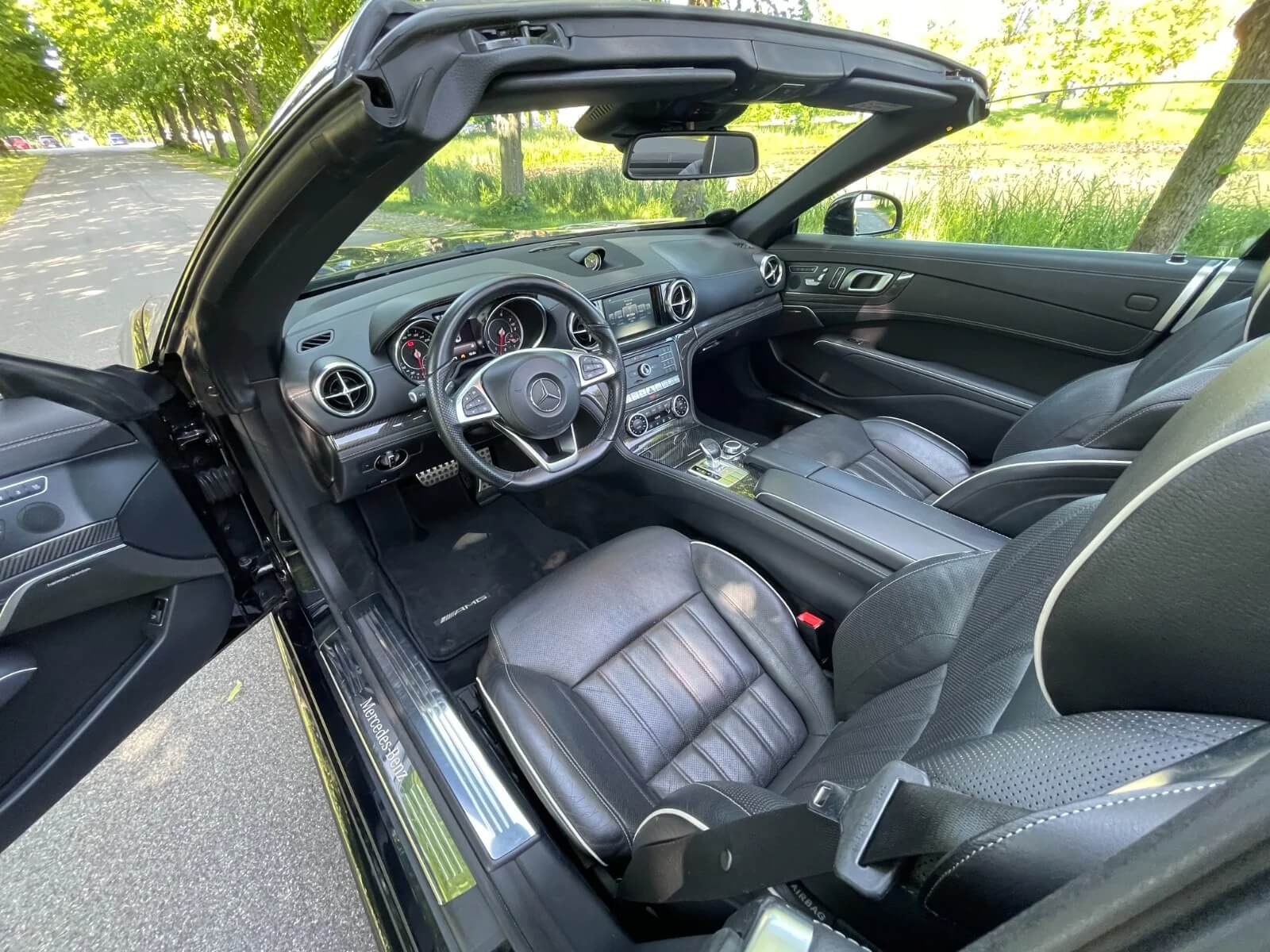 Mercedes-luksus og tilstedeværelse: SL400 fra 2016 udstråler klassisk Mercedes-kvalitet med eksklusivt interiør og et tidløst design, der skiller sig ud på vejen.