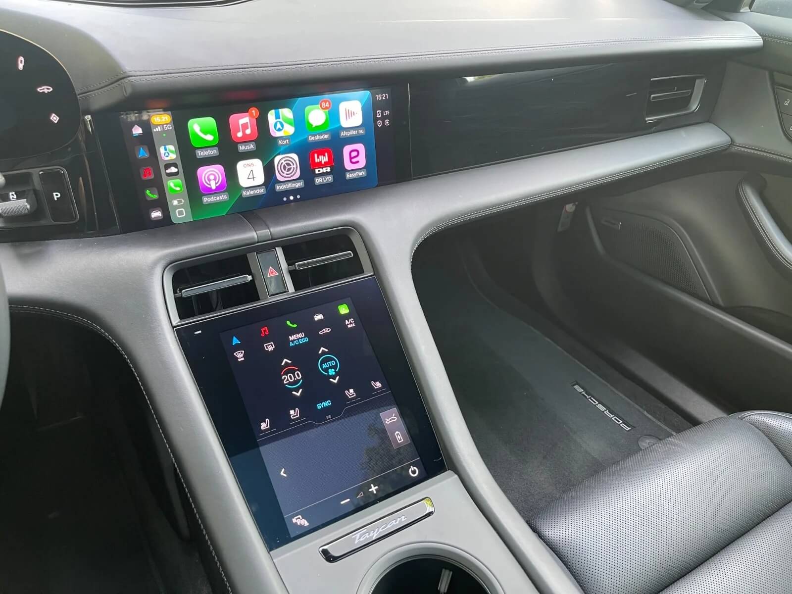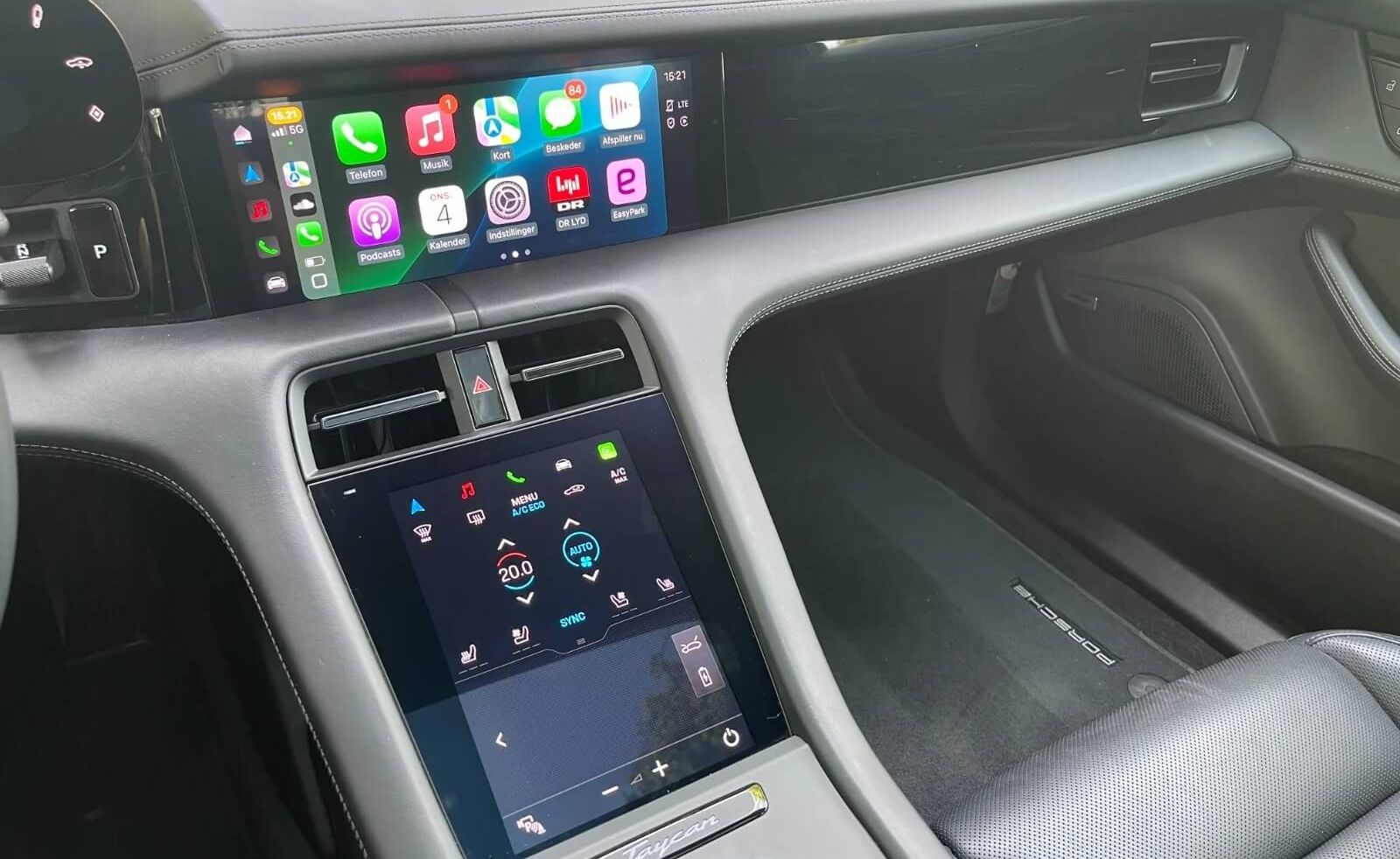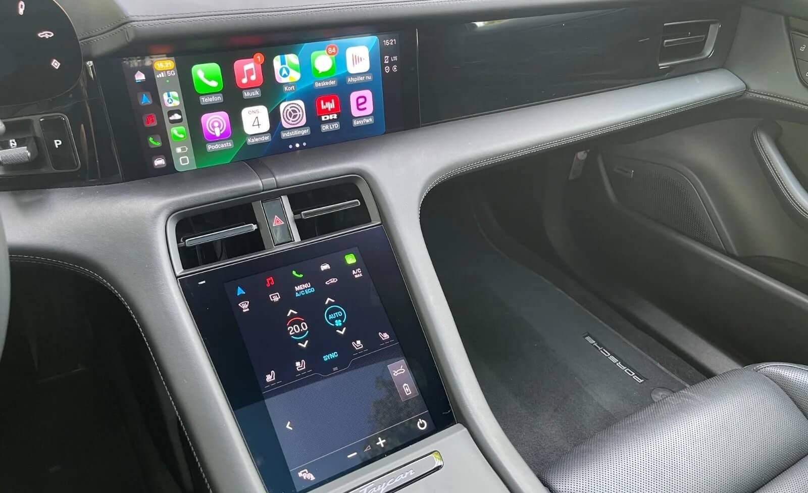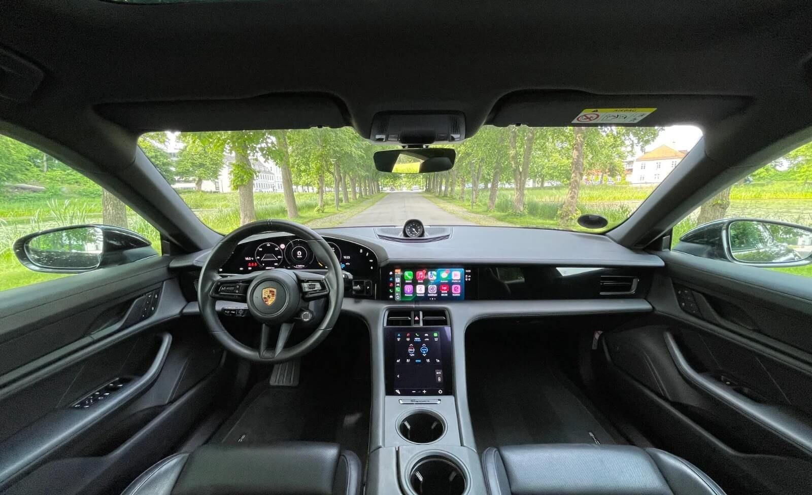 Moderne teknologi: Taycan Performance+ indeholder det nyeste indenfor automobilteknologi m inklusive et innovativt og brugervenligt infotainment system, der understøtter både Apple CarPlay og Android Auto, sikrende en ubesværet og forbundet køreoplevelse.